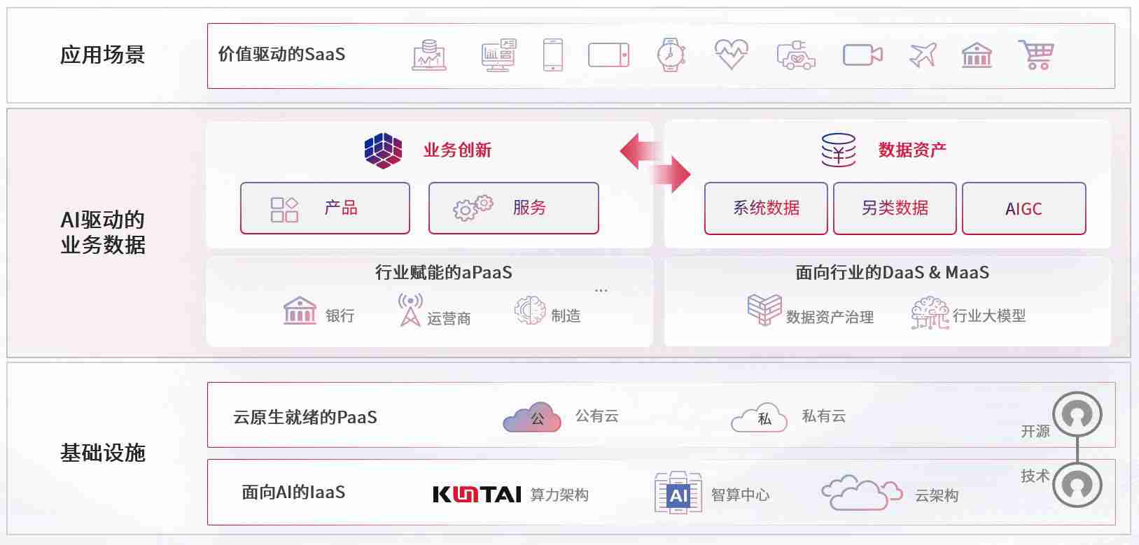 数字时代,,围绕企业数字化转型的关键要素,,,,尊龙集团数码开创性的提出数云融合战略和技术体系框架,,着力在云原生、、、数字原生、、AI原生和信创产业上架构产品和服务能力,,为处在不同数字化转型阶段的快消零售、、汽车、、、金融、、、医疗、、、、政企、、、教育、、、、运营商等行业客户提供泛在的敏捷IT能力和融合的数据驱动能力,,,构建跨界融合创新的数字业务场景和新业务模式,,,助力企业级客户建立面向未来的核心能力和竞争优势,,,全面推动社会的数字化、、、智能化转型升级。。